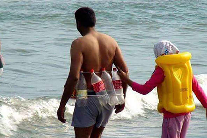 When you go swimming in the ocean, safety should always be the top priority because it can be a dangerous place. But in this case, it looks like this group of people doesn’t really care about that. There are cheap and easy-to-get life jackets available, so their decision to spend a lot of time making their own floatation devices out of recycled materials seems kind of unnecessary.