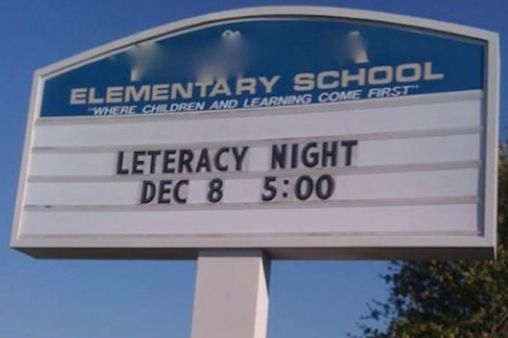 One can only hope that this sign was intentionally crafted as it appears. Otherwise, some parents might consider transferring their children to a different school. The school sign displays: “Leteracy night.” Clearly, it should read “Literacy night.” If this was a deliberate joke, it’s quite clever. Either way, this mistake might just lead to an increased turnout, as it’s sure to grab attention.