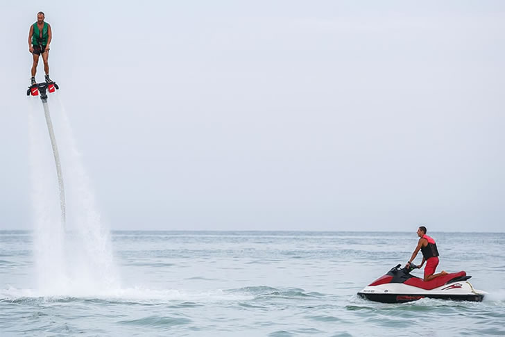The latest obsession for those with disposable income to spare is flyboarding. This sport involves a long hose attached to the device, which redirects water pressure through jet nozzles beneath the boots, granting the user the sensation of flight above the water’s surface.