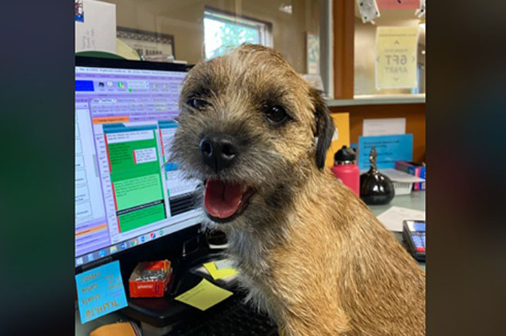 This cheerful pup has taken on the role of office greeter at the vet’s clinic. With its happy expression and wagging tail, it’s ready to welcome every patient and their owners. The dog’s friendly nature and adorable appearance make it a beloved figure at the clinic.