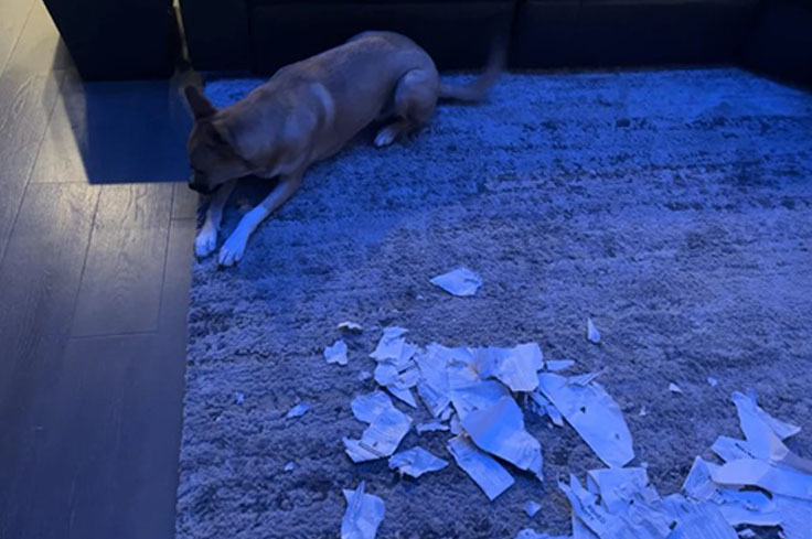 This playful destruction showcases the dog’s energetic and curious nature, often leading to humorous and exasperating moments for pet owners. It’s a relatable scene for many, highlighting the sometimes destructive curiosity of pets. Despite the mess, the dog’s charming presence and innocent demeanor make it hard to stay upset for long.