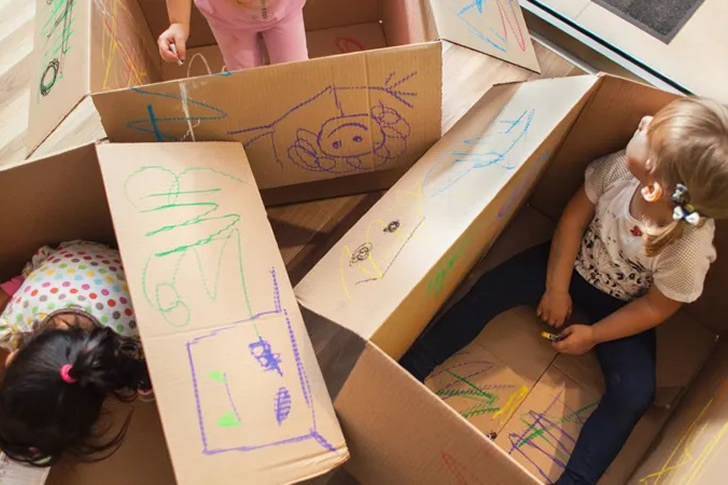 Cardboard boxes can be a treasure trove of fun and creativity for young artists. Transform these everyday items into hideaways, fortresses, or art canvases. Give your children some markers, crayons, or paints, and watch them turn the plain cardboard into vibrant masterpieces. This simple, cost-free activity encourages imaginative play and artistic expression, keeping kids entertained for hours.