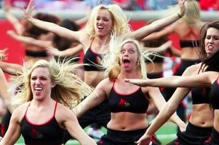 Here we see a perfectly timed photo of a cheerleader that reminds us what happens when you’ve been dating for a while and just want to let your hair down and show your partner your true colors. Hey! If your partner doesn’t run away screaming for the hills, then they’re a keeper.